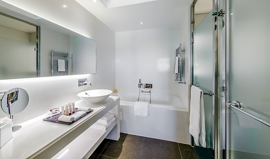 Decorated in a contemporary style, this twin room features air conditioning, a desk and a 30 ft² terrace. It also offers sea view. It is equipped with one 63 in bed and one 55 in bed.